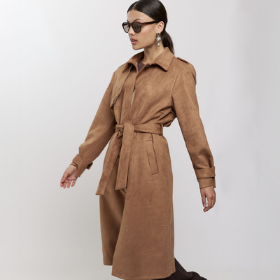 ( ilość produktów: 3 )Zamszowy płaszcz damski jasny brąz LUCCA