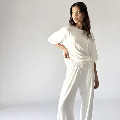 Komplet oversize z wiskozy – kremowy CALMA