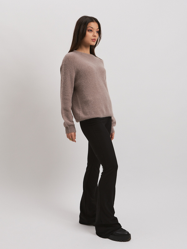 - Sweter damski– miękki, niegryzący i elegancki. Wykonany z luksusowej baby suri alpaki, zachwyca lekkością i komfortem. Ponadczasowy fason w odcieniu taupe świetnie dopełni stylizacje z marynarką, płaszczem lub klasycznymi spodniami.